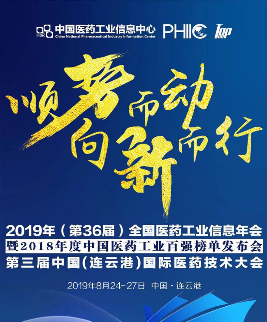 第36屆全國醫藥工業信息年會暨2018年度中國醫藥工業百強榜單發布、第三屆中國(連云港)國際醫藥技術大會擬定于2019年8月23日—27日在連云港市舉辦。本次會議邀請各級領導,中國科學院、中國工程院院士,海內外醫藥技術專家,醫院院長,企業高管及業務主管等與會代表約2000人。