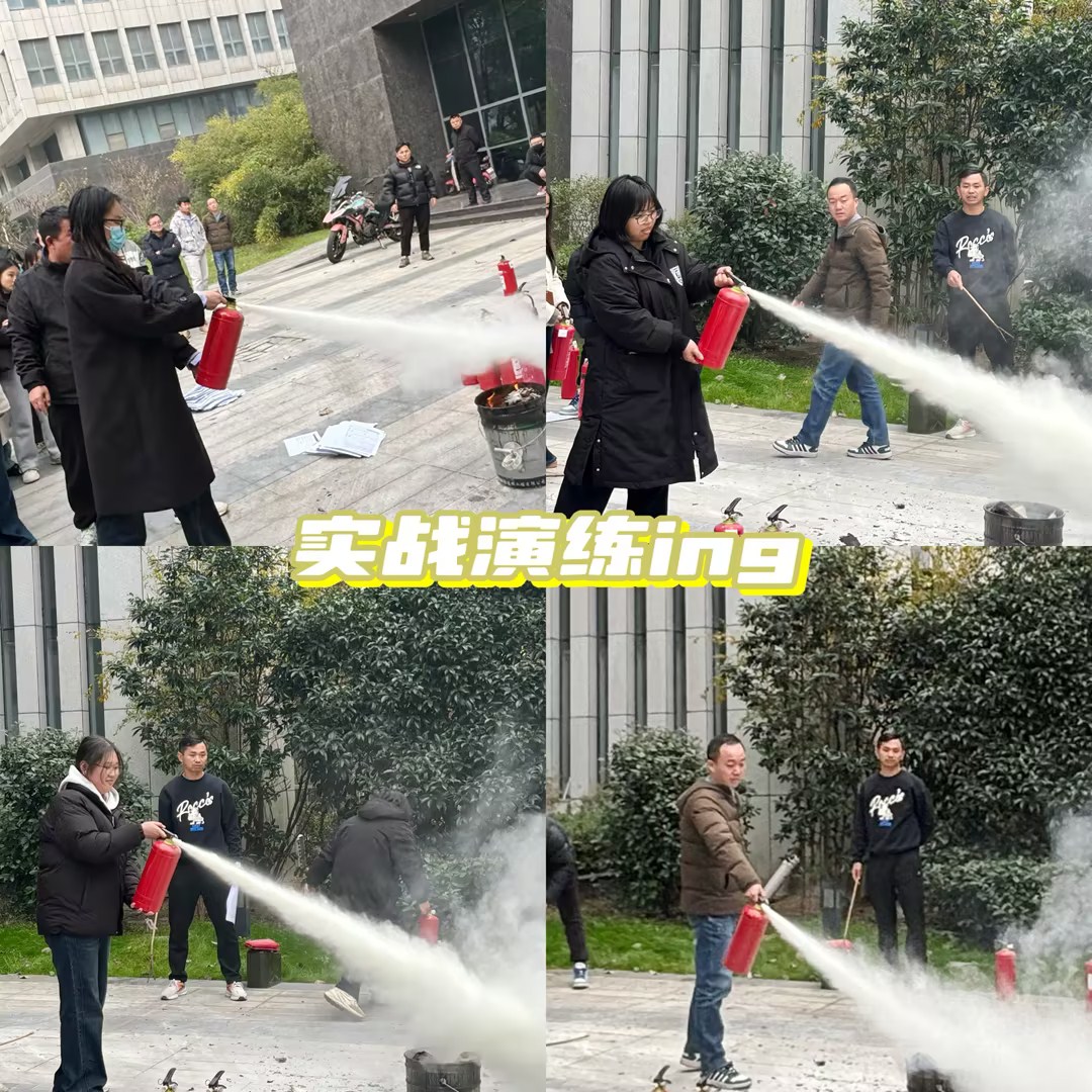 授課結(jié)束后,所有參與人員移步至室外場地,進行了一系列實踐操作的消防演練活動。在專業(yè)指導(dǎo)員的帶領(lǐng)下,員工們學(xué)習(xí)并練習(xí)了不同種類滅火器的正確使用方法,包括干粉滅火器、二氧化碳滅火器等,并了解了其適用范圍和操作要領(lǐng)。此外,講師還重點介紹了防火面罩的使用方法及其在火場中的重要性,讓員工了解到裝備在濃煙環(huán)境中提供寶貴的呼吸保護,大大增加了逃生成功的幾率。